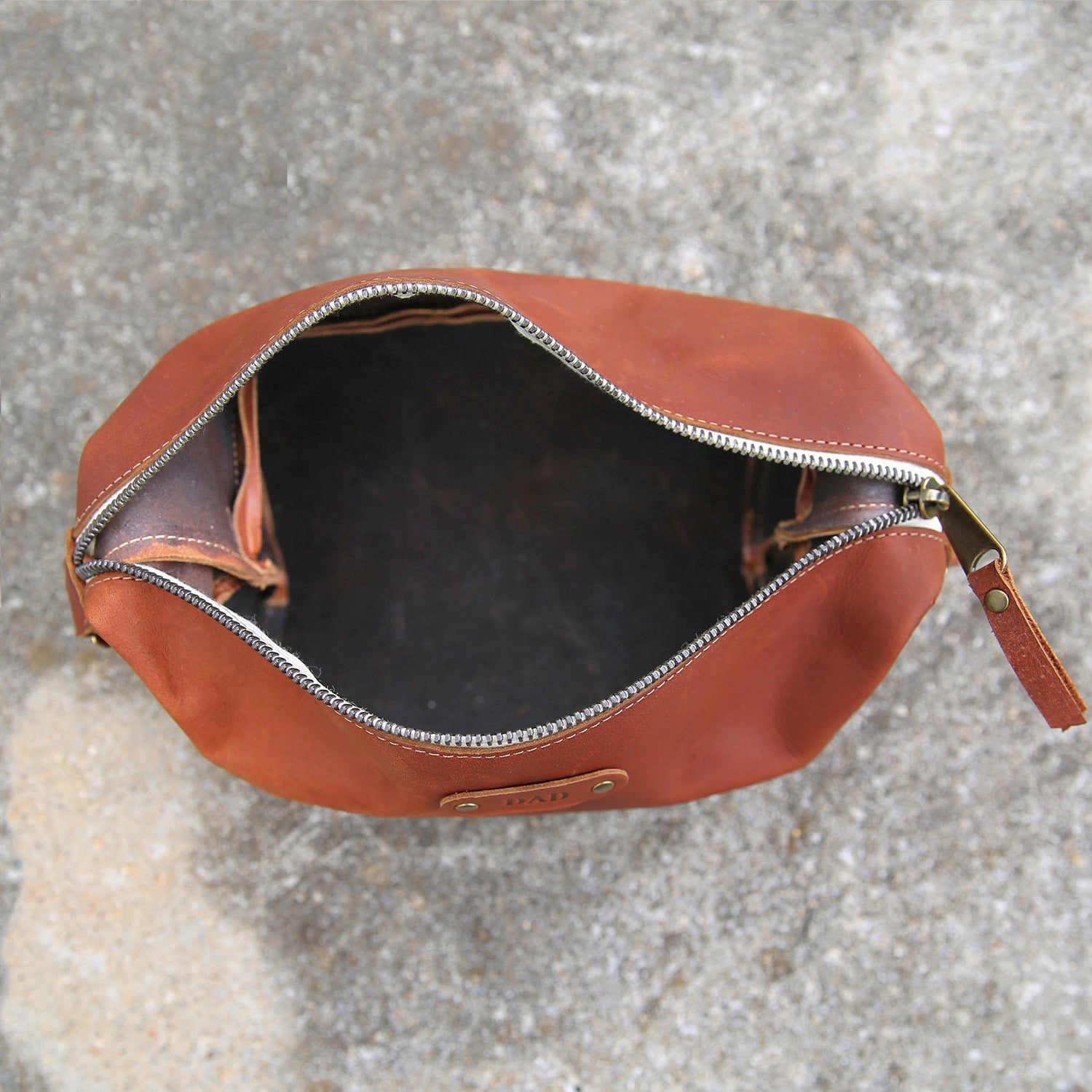 The Dopp Bag - Personalized Brown Fine Leather Shave Toiletry Bag Travel Bag With Zipper