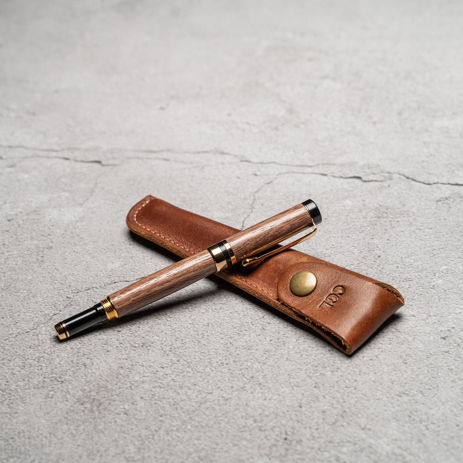 Hand-Turned Walnut Rollerball Pen + Fine Leather Pen Sleeve