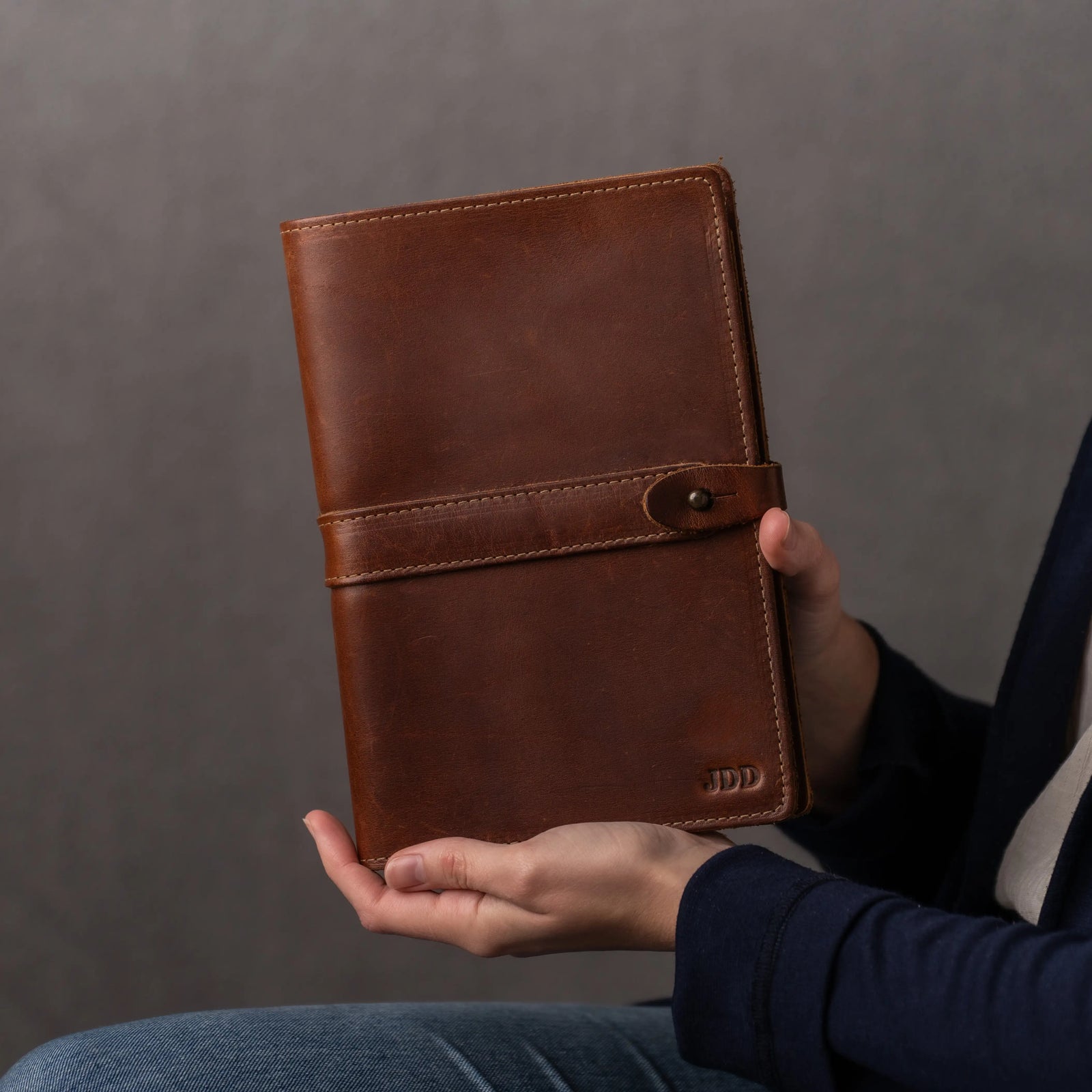 Personalized Leather Journal with Shrunken Bison Leather Cover - The Scholar