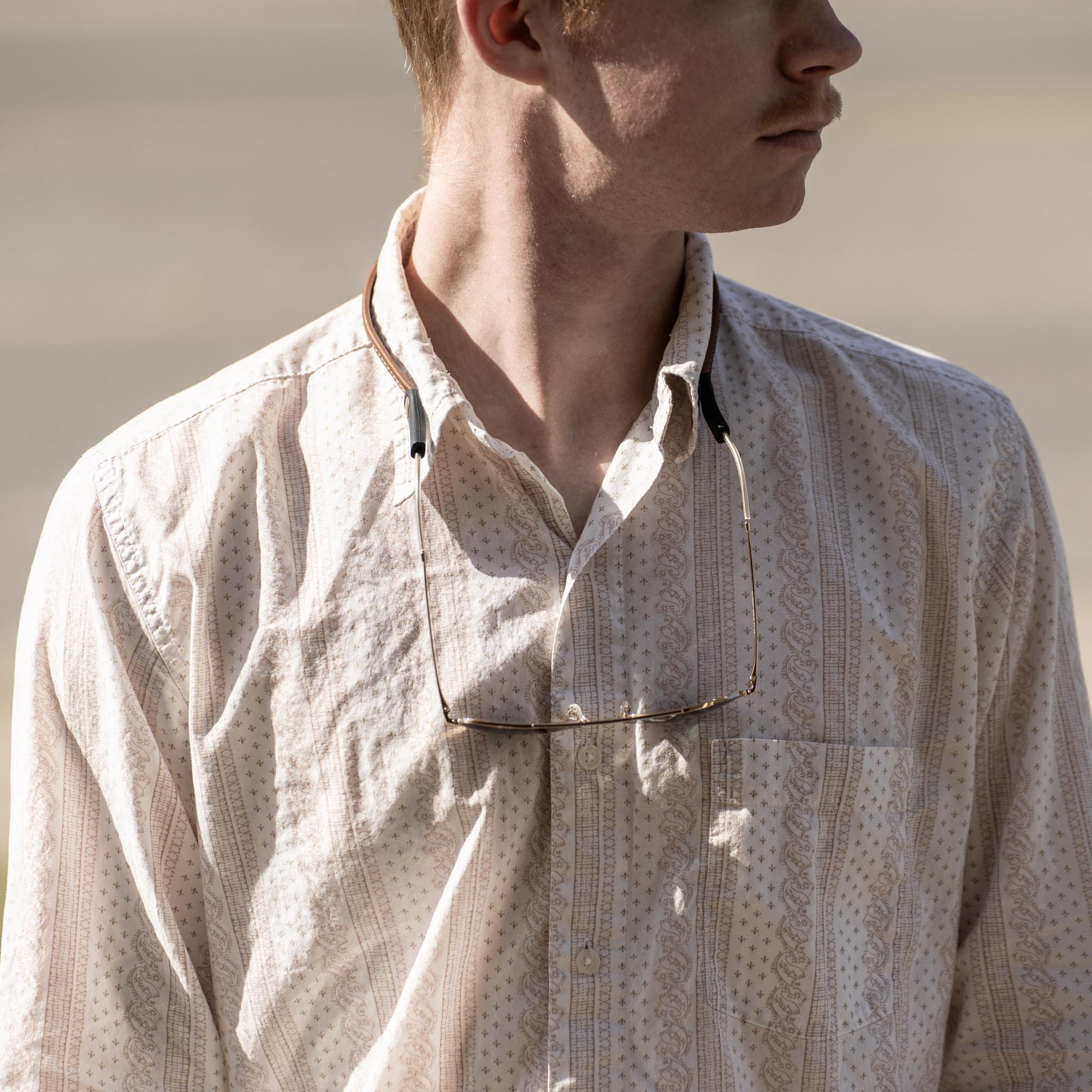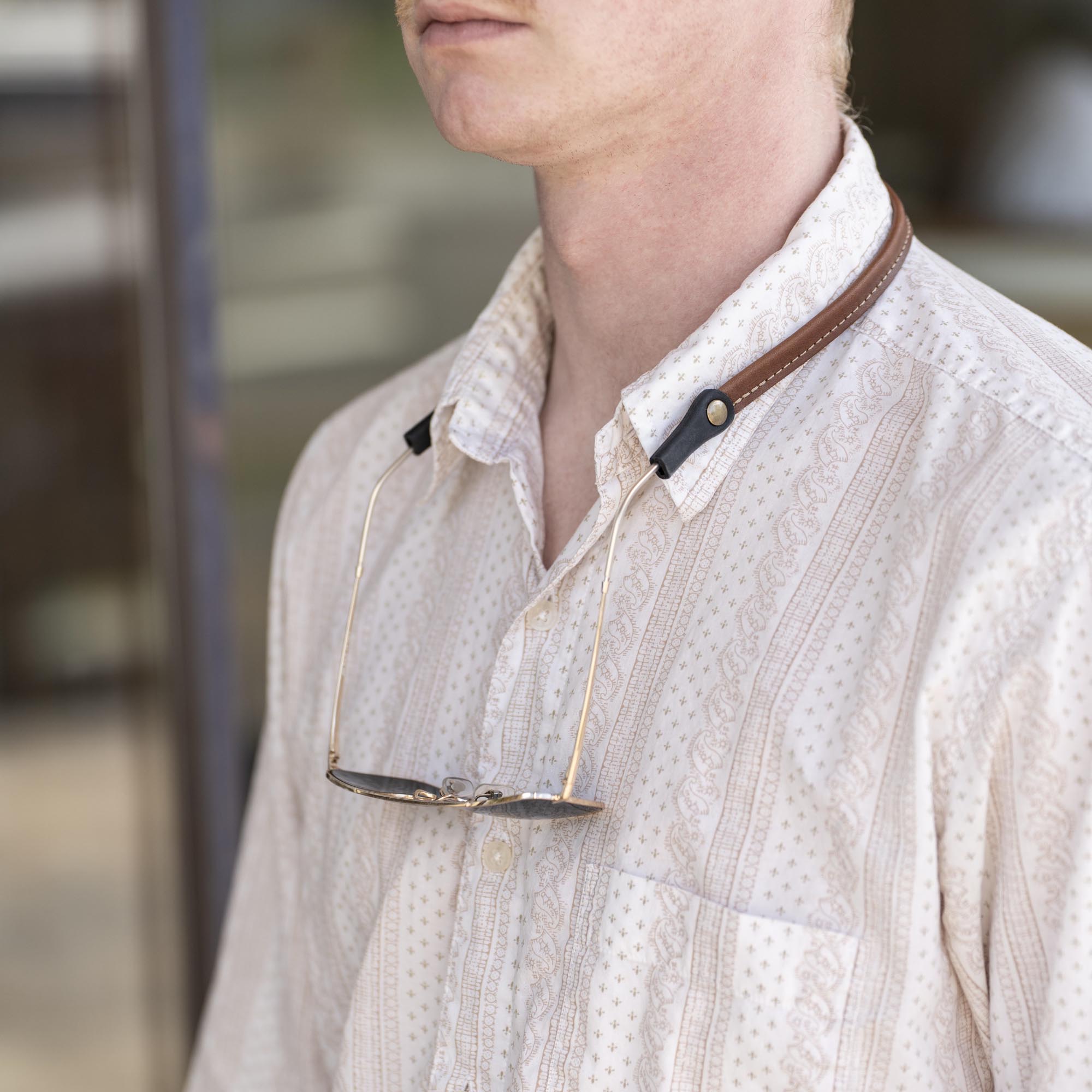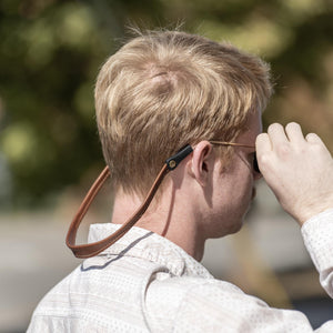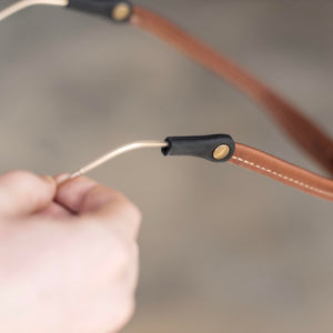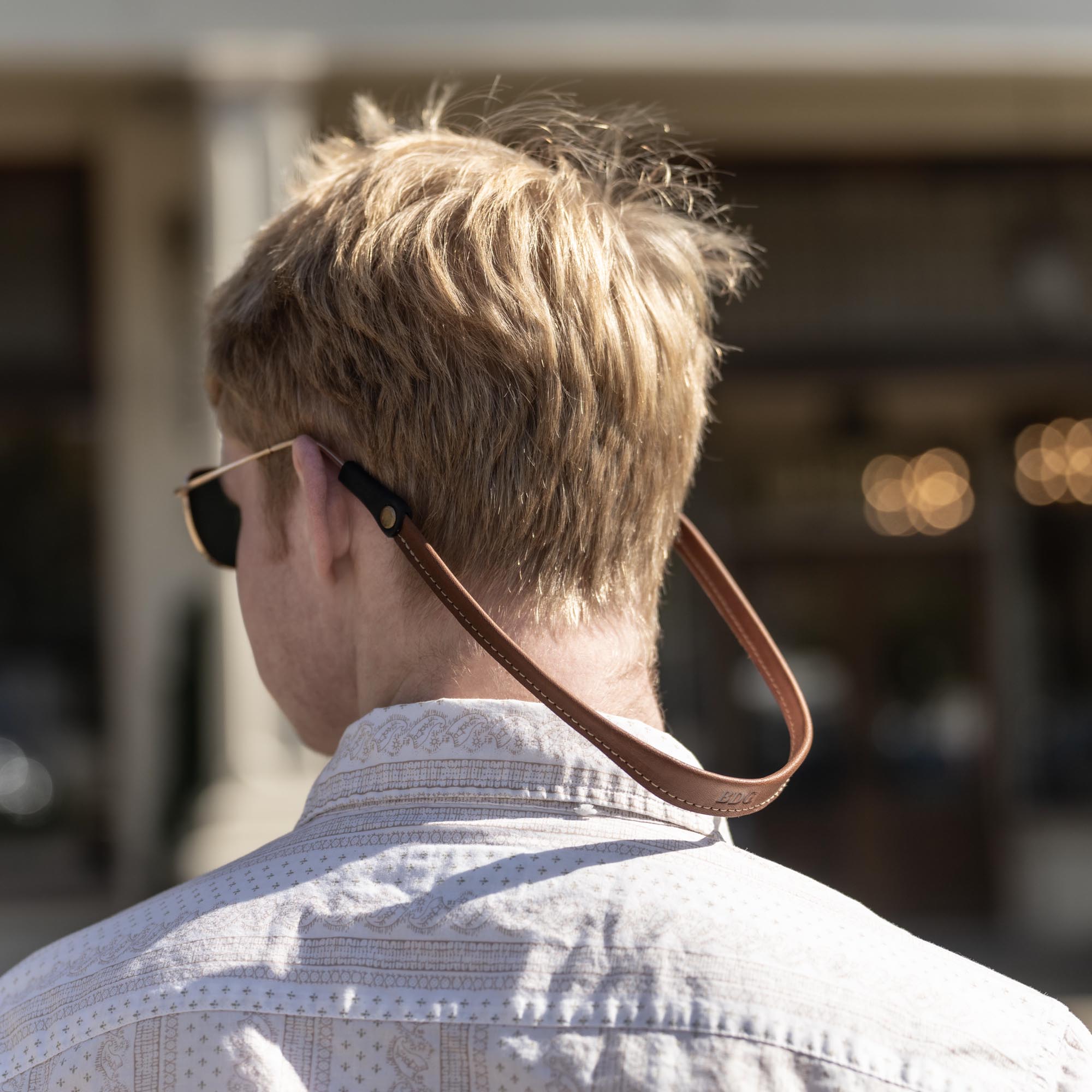 Hand crafted from full grain tumbled leather, with high-stretch silicone grips and solid brass rivets for a secure hold. This water-safe sunglasses strap is ready for beach days, lake trips, and everything in between.